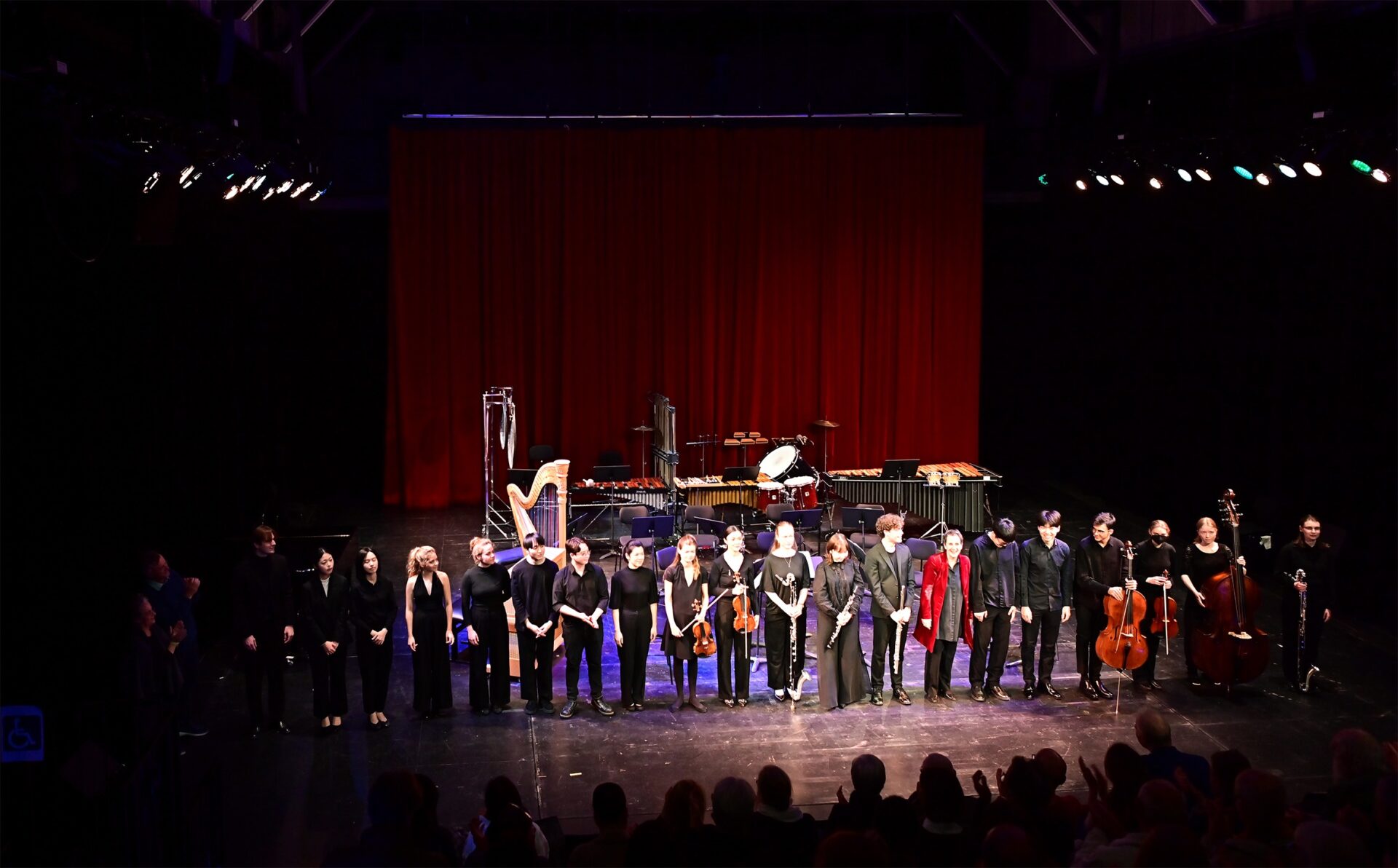 Vorheriges Bild Schlussapplaus ©Gregory Giakis Schlussapplaus für das Ensemble mit der anwesenden Komponistin Betty Olivero und des Komponisten Jan Müller-Wieland ganz links ©Gregory Giakis