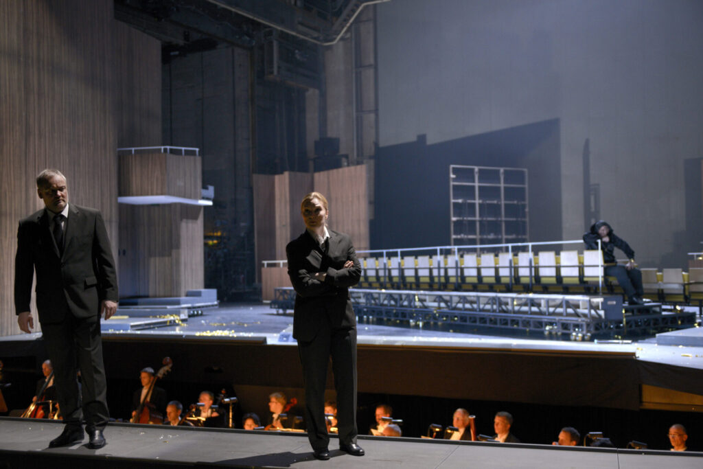 Danilov kombiniert Piave und Verdi, kraftvoll und mit verschlagen-doppelbödigem Verzicht auf den lalleretzten tenoralen Höhenschmelz. Schon bei der ersten Silbe wird klar: Hier bahnt sich Unheil an – Rigoletto heuert mit Sparafucile (Tobias Kehrer) einen zwielichtigen Auftragsmörder an, der nach einigem Hin und Her Rigolettos Tochter um die Ecke bringt.