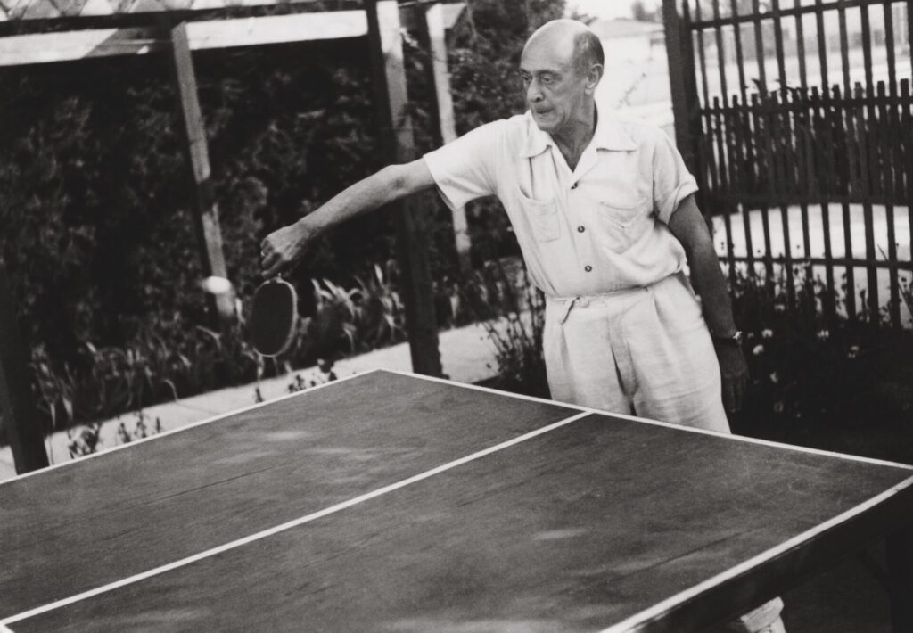 Er bestand immer auf modern zeitgemäßen Einrichtungen, Bugholzmöbel von Thonet wurden von Stahlrohrtischen und -stühlen im Bauhaus-Stil abgelöst. Seiner Erfindungsgabe enstammt auch das von ihm konzipierte Koalitions-Schach. Als Schachweltmeister Emanuel Lasker seinen Besuch ankündigte, verbarg Schönberg das Spiel vor ihm und meinte nachher: “Das wäre für Lasker so schlimm wie für mich eine Komposition von ihm.” In der Emigration waren unter vielen anderen Thomas Mann, Bertolt Brecht und Dave Brubeck zu Gast im Haus Schönberg. Etliche Fotografien zeigen den Meister im Kreis seiner Familie.