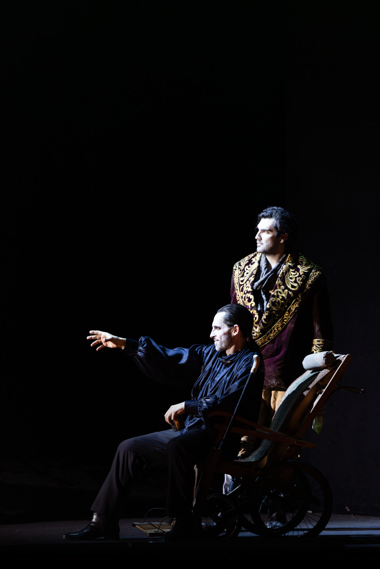 Vorheriges Bild Nächstes Bild 71-Faust_2026_J.Tetelman_K.Ketelsen_c_G.Schied Méphistophélès Kyle Ketelsen (rechts) und Le docteur Faust Jonathan Tetelman (links) © G. Schied