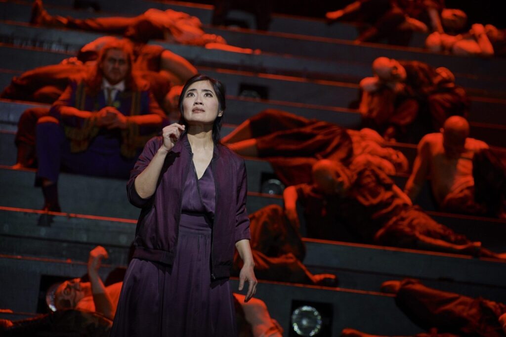 Über die Inszenierung von Martin G. Berger will ich nicht zu viele Worte verlieren. Mich konnte sie nicht begeistern. Der Ansatz die Oper weder geschichtlich, noch geopolitisch zu situieren oder zu aktualisieren ist lobenswert. Der Regisseur will eher die Frage aufwerfen, wieso ein einzelner Mensch immer wieder sein Volk voll ein- und dann ausnehmen kann. Wieso verfällt das Volk immer wieder so leicht einem Führer?