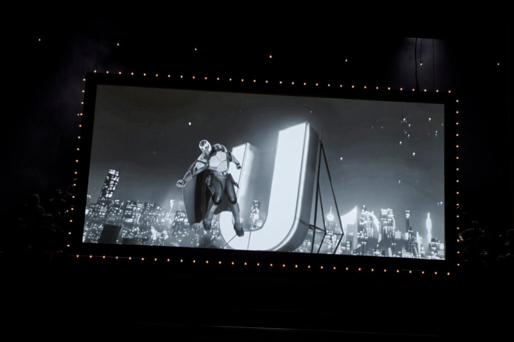 Leider fällt ihm dann dazu die stumpfsinnige Idee ein, Mazeppa als Superhelden à la Ironman oder Superman auftreten zu lassen. Andauernd sieht man den Helden in Videos (XX) durch die Luft fliegen. Im Hintergrund bemerkt man dann auch öfters noch das Logo des BVB. Ein Zeichen, dass Mazeppa zum Verlieren verdammt ist (Smiley)? Die funktionell auf diese Sicht gebaute Bühne stammt von Sarah-Katharina Karl, die Kostüme von Alexander Djurkov Hotter.