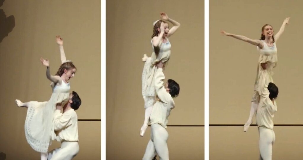 Das Orchester war unter der Leitung von Simon Hewett bestens aufgelegt und harmonierte prächtig mit dem Bühnengeschehen. Tänzerisch und emotional berührend gelang der Pas de deux Marie/Günther im zweiten Bild. Wie Olivia Betteridge, hervorragend gepartnert von Alexandr Trusch, hier ihre Gefühle zum Ausdruck bringt, wie sie sich, erst erschreckend und schließlich jubelnd, in die Höhe heben lässt und sich ihm, nur von seiner rechten Hand zum Bühnenhimmel empor gehoben, anvertraut, ist nicht nur ausdrucksstark gespielt und getanzt, sondern zeugt zudem von dem Genie John Neumeiers, zu Herzen gehende Pas de deux zu choreographieren. Da reichen selbst die von Ida Praetorius und Alexandr Trusch im Grand Pas de deux mit großer Präzision getanzten klassischen „Drosselmeier“-Variationen nicht heran.