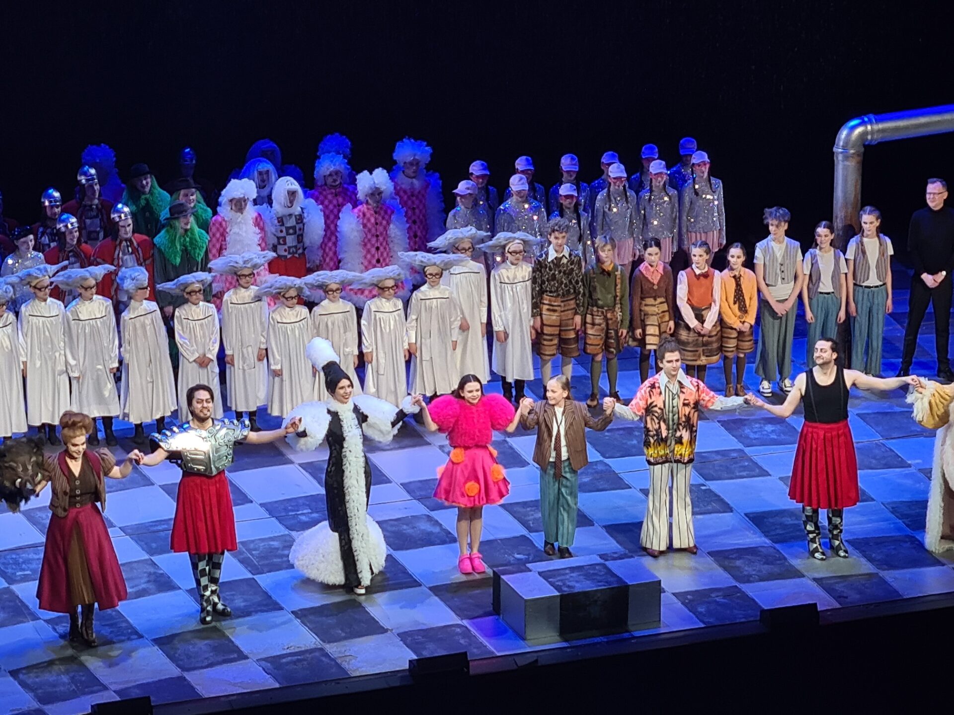 Nächstes Bild Drei Rätsel Ensemblebild beim Schlussapplaus der Schulvorstellung „Die drei Rätsel“ am 13.02.2026, Bild: RK