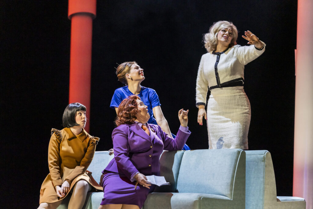 Rosalia Cid (Nannetta), Eleonora Buratto (Mrs. Alice Ford), Nicola Alaimo (Sir John Falstaff), Nicole Chirka (Mrs. Meg Page), Marie-Nicole Lemieux (Mrs. Quickly) © Semperoper Dresden/Jochen Quast