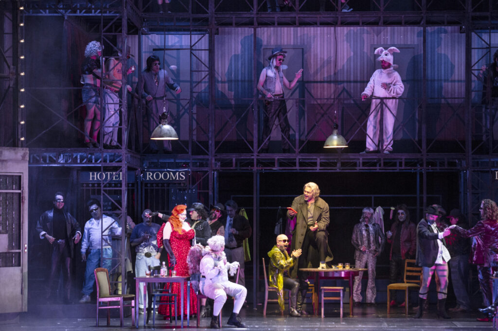 Regisseurin Lydia Steier wartet gemeinsam mit Bühnenbildner Momme Hinrichs insbesondere in den ersten beiden Akten wie gewohnt mit opulent-dekadenter Bildreiz-Überflutung auf. Bis ins kleinste Detail ist die Personenregie durchdekliniert. Die Studenten, die den Teufel vor seinem eigenen Fusel warnen wollen, staunen etwa nicht schlecht, als der Hornträger sein Höllenfeuer ohne mit der Wimper zu zucken runterkippt.
