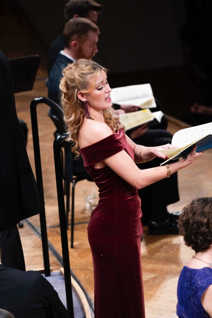 Die schönsten Arien waren der Mezzosopranistin Marianne Beate Kielland zugeteilt. Sie sind eigentlich für eine Altstimme gedacht; Kielland entschädigte für ihre nicht sonderlich starke Tiefe mit ihrer reichen, ausdrucksvollen Mittel- und Höhenlage. In der wundervollen Arie “Schlafe, mein Liebster” breitete sich himmlische Ruhe aus. Miriam Kutrowatz war etwas unterbeschäftigt; ihr fiel lediglich die Ansprache des Engels in Kantate II sowie Rezitativ und Arie “Nur ein Wink” in Kantate VI zu. Ihr heller, sicherer Sopran war in beiden Kantaten bestens eingesetzt; in der Arie war ihr Zwiegespräch mit der Solooboe eine reine Freude.