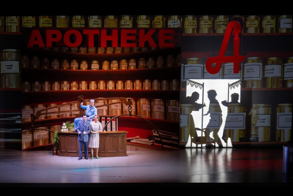 Der 3. Akt spielt in der herrlich-altmodischen Apotheke von Bertis Freund Herrn Egon. Wer sich diese Szenerie ausgedacht hat, bekommt von mir langanhaltenden Sonderapplaus für eine Köstlichkeit, die lange vorhält. Der Rest ist Show, Musical und Oper – alles in einer Schublade des guten Geschmacks vereint. Die Kinder, die Schüler und alle mit ihnen amüsieren sich wie Bolle (wie man in Berlin sagt) und das Schillertheater erlebt auf seine alten Tage einen Frohsinn ungeahnten Ausmaßes.