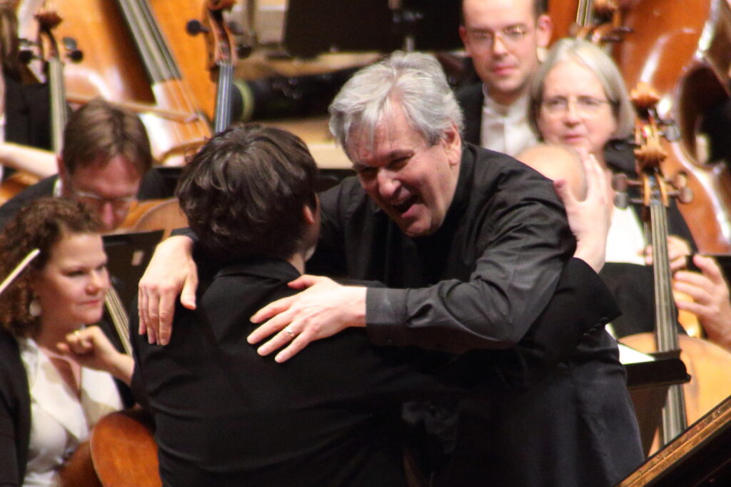 Schostakowitschs Neunte Sinfonie zu Beginn des Konzerts wurde zu einem triumphalen Klangerlebnis. Deutlicher konnte man die ironischen Kommentare zum Größenwahn des verbrecherischen Stalin-Regimes selten vernehmen. Auf des Messers Schneide verlief dadurch nicht zuletzt sein eigenes Leben, das er immer wieder mit solchen Kompositionen gespickt mit versteckten Zitaten, einer fließenden, grabesartigen Finsternis, wo sich die glühenden Bläserphrasen wie Nadelstiche aus Licht in die Finsternis bohrten, aufs Spiel setzte. Das das Finale einleitende Fagott Solo kam so berührend zart und dennoch Mark und Bein treffend.