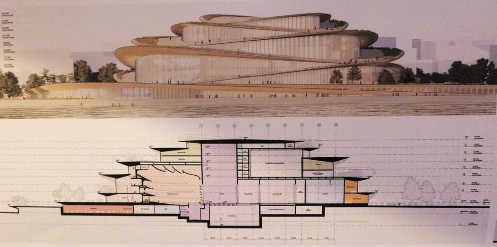 Der Entwurf der Kopenhagener Architekten BIG wurde in der Öffentlichkeit mehrheitlich begrüßt. In der Kette zwischen Elbphilharmonie und dem Elbtower mit dem geplanten großen Naturkundemuseum wird dieses Operngebäude ein weiterer ikonischer Blickfang sein. Ob sich allerdings die vorgesehene Durchgrünung des Geländes inmitten der Elbe mit den vorherrschenden Westwinden halten wird, sei dahingestellt. Zumindest wird die dünenartige Anmutung auf dem Vorgelände nicht Bestand haben, sofern tatsächlich Sandhügel aufgeschüttet werden. Schön sieht es aber trotzdem aus.
