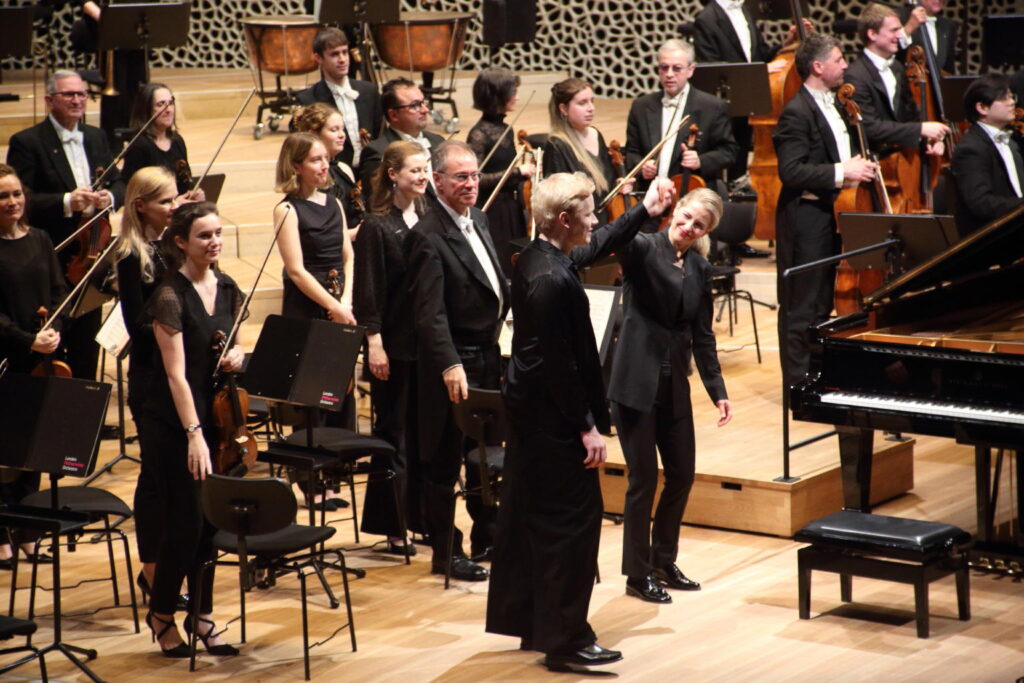 Selbst und gerade auch beim Klavierkonzert von Mozart, wo man doch bei wunderbarem Flügelspiel des jungen Russen ganz bei sich bleiben konnte, sich tief in die Harmonien des Wolferls einfühlen konnte: – Applaus Applaus und Handy raus!!! nach jeder nur erdenklichen Möglichkeit – Und man muss der jungen Dirigentin eine Mitschuld geben, denn es wirkte so, als dass sie sich freute und angedeutete Knickse vor dem erlauchten Publikum vollbrachte. Dem etwas verdutzten Pianisten fiel dann auch nur noch ein, sich nach jedem Satz brav zu verbeugen. Ich weiß von vielen Gesprächen mit Künstlern, dass das den kompletten Musikfluss und die Konzentration aufs nächste Stück zerstören oder zumindest deutlich erschweren kann.