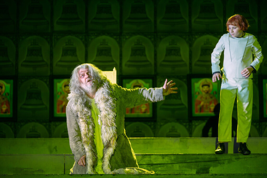Bryn Terfel gelingt die Umsetzung der Ideen des Regisseurs ausgezeichnet, sowohl szenisch als auch stimmlich. Die Weiterentwicklung seiner Interpretation lässt sich im Vergleich zur Videoaufnahme seines Rollendebüts von 2017 gut nachvollziehen. Er zeigt den Zaren von Anfang an als geknickten Mann, der an der Größe seiner Aufgabe scheitert. Seine Hoffnung Frieden in der Familie zu finden geht auch schief. In den familiären Szenen mit seinen Kindern füllt sich die Stimme des walisischen Bass-Baritons voller Zärtlichkeit.