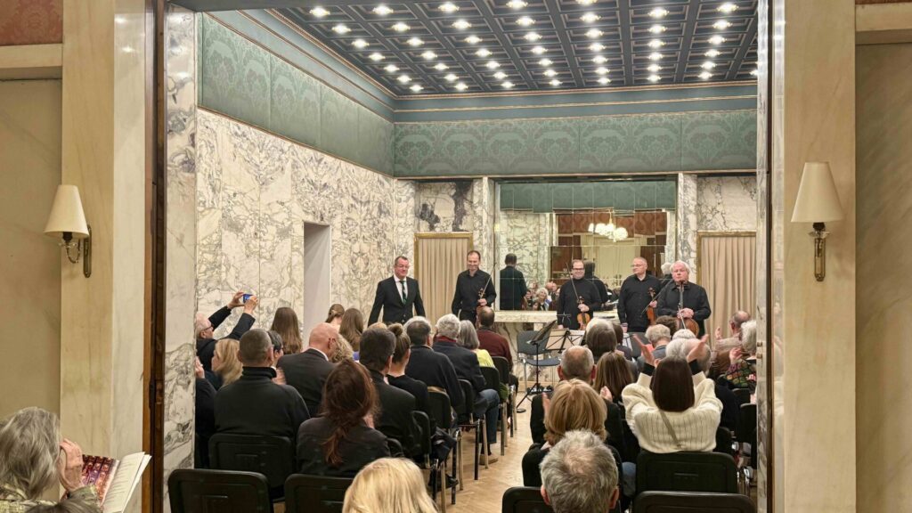 Das aron quartett gestaltete einen faszinierenden Abend in der von Adolf Loos gestalteten Wohnung des Industriellen und Mäzens Emil Löwenbach. Es erklangen Auszüge aus Quartetten von Mozart, Beethoven, Schönberg, Webern, Zemlinsky, Korngold, Bartók und Ravel. Daniel Große Boymann las Texte, die gemeinsam mit der Musik die Ziele und die Atmosphäre der Umbruchszeit in Wien um 1910 plastisch heraufbeschworen.