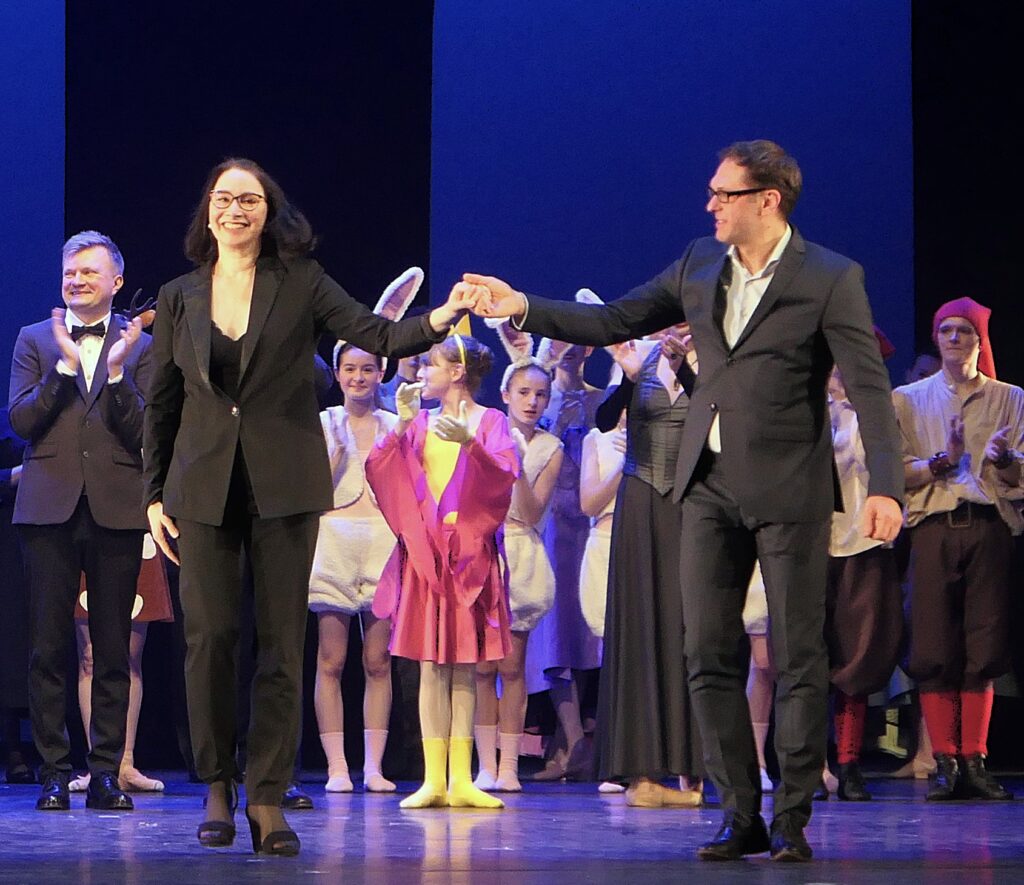 Der Choreograph Yaroslav Ivanenko ergänzte sein Ensemble mit zahlreichen Mitgliedern der Kieler Ballett-Akademie. Dabei handelt es sich um etwa 20 junge Tänzerinnen und (ganz wenige) Tänzer privater Ballettschulen, die bei entsprechender Begabung zweimal wöchentlich im Ballettsaal des Kieler Opernhauses trainiert werden. Mit diesen zusätzlichen Kräften füllten bis zu 40 Personen die Bühne, von den ganz Lütten wie der aufgeweckten Finja Bahr als kleines Schneewittchen bis zu den Spitzentänzern des Kieler Balletts wie Keito Yamamoto (Schneewittchen) oder Vitalii Netrunenko (Prinz). Das machte schon Eindruck auf der nicht sehr großen Kieler Bühne.