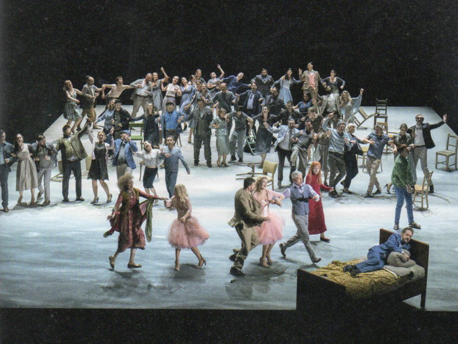 „Peter Grimes“ ist eine Chor-Oper. In der preisgekrönten Produktion aus dem Theater an der Wien des Jahrs 2015 (Regie: Christof Loy, Bühne: Johannes Leiacker, Choreografie Thomas Wilhelm), die 2021 wiederaufgenommen wurde, erfährt der Arnold Schoenberg Chor unter der Leitung seines Gründers Erwin Ortner choreografische Betreuung. Volksmassen bewegen sich bewundernswert durcheinander, schreiten gegeneinander, kumulieren, interagieren und lösen sich dann wieder auf. Ja, sie ersetzen eine Bühnendekoration.