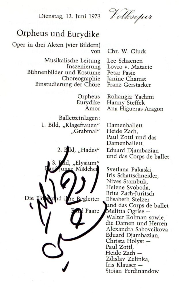 Von der in Teheran geborenen Rohangiz Yachmi werden in Wikipedia unter „Leben und Werk“ in ihren 27 Jahren als Ensemblemitglied der Wiener Staatsoper ihre zahlreichen Neben- und Hauptrollen angeführt. Pars pro toto: 51-mal die Zweite Dame in der Zauberflöte, 50-mal den Pagen der Herodias in Salome, 41-mal die Lola in Cavalleria rusticana, 32-mal eine der Mägde in Elektra. Die Bersi (29-mal) in Andrea Chénier und die Suzuki (25-mal) in Madama Butterfly werden ebenfalls als Nebenrollen eingestuft. Zwar sang sie nur 7-mal den Octavian im Rosenkavalier, dafür jedoch 29-mal den Nicklausse in Hoffmanns Erzählungen, 35-mal die Rosina im Barbier von Sevilla und 66-mal den Cherubino in der Hochzeit des Figaro. Ich selbst verbinde die Künstlerin mit der Maddalena, der Schwester Sparafuciles, mehrmals mit dem Pagen und einmal in der Volksoper mit dem Gluck’schen Orpheus.
