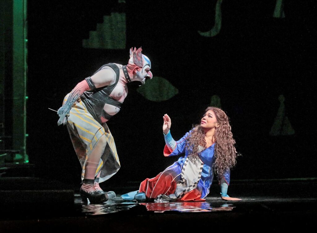 Hautfarbenwechsel: Der ehemalige Mohr Monostatos trägt eine fratzenhafte, helle Maske, Pamina wird von einer dunkelhäutigen Sopranistin dargestellt.